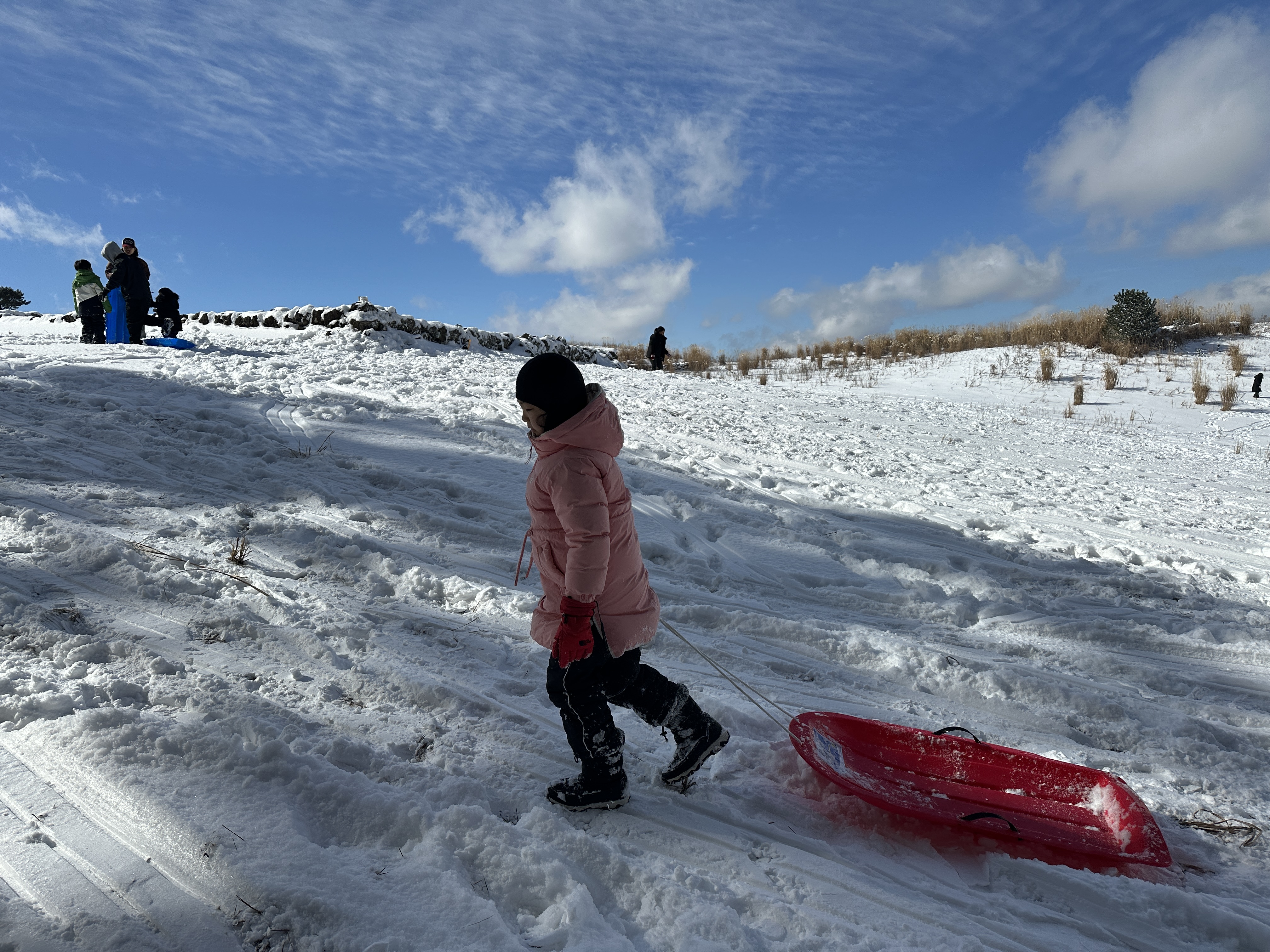 작년 요맘때 제주살이로 왔을때는 1100고지에서 눈썰매를 탔었는데,